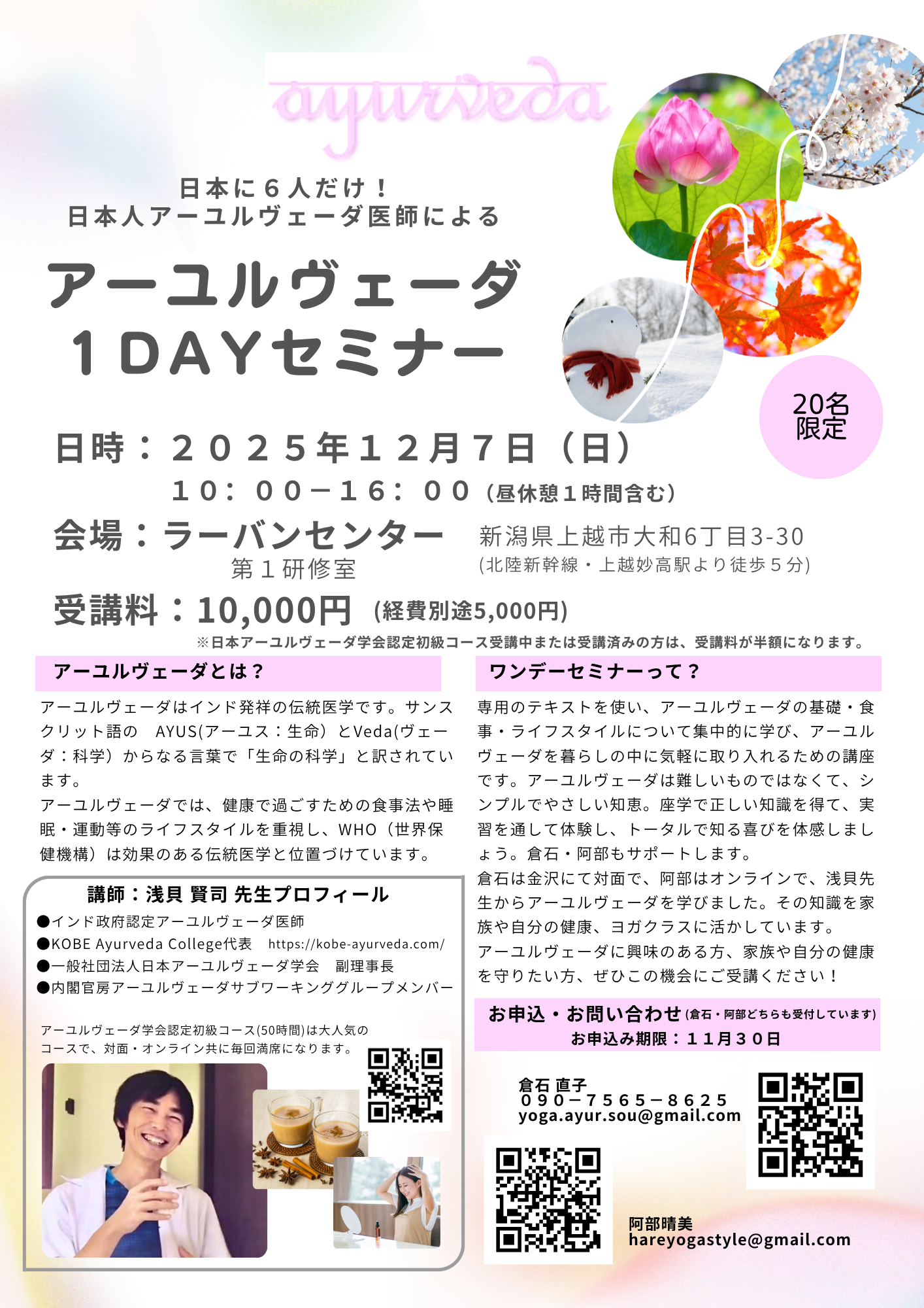 ヨガクラス アーユルヴェーダ入門・基礎講座 |